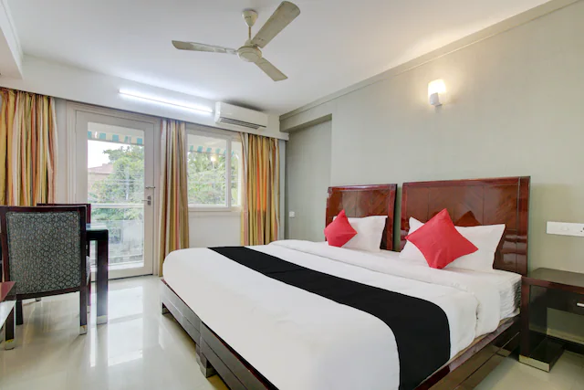 Our Super Deluxe Rooms are very stylish & felted with healthy & clean madhouses on a double bed. Its contemporary styling shows a spirit of true Indian spirit along with a western styling . Room has the filled floor along a classic wood worn mirror dinning table & chairs.